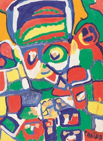 Née en 1929 près d’El Jadida et décédée en 2004 à Casablanca, Chaïbia tallal grandit à la campagne où elle apprend à tisser la laine et à broder. Elle n’apprend à lire et à écrire que tardivement. Autodidacte, elle commence à peindre et montre ses toiles à Ahmed Cherkaoui et à son fils Hossein Tallal. Pierre Gaudibert, de passage au Maroc, la découvre en 1966, une année qui fait date : Chaïbia expose au Salon des Surindépendants au Musée d’Art Moderne de Paris. Chaïbia peint avec un naturel désarmant. Avec des couleurs vives et des gestes spontanés, son art échappe à toute catégorisation. On trouve dans les toiles de Chaïbia ce plaisir à la répétition tellement caractéristique de l’enfance. Les personnages, qui restent son sujet de prédilection, prennent possession de toute la surface de la toile. Deux éléments reviennent avec une constance inébranlable : le visage et les mains. Les œuvres de Chaïbia ont été exposées aux côtés de celles de Pablo Picasso, Pierre Alechinsky, Jean hélion, hans Arp ou Ledouanier rousseau. Son œuvre, reconnue dans le monde entier, fait notamment partie des collections publiques françaises telles que le fond national d’art contemporain ou l’institut du Monde Arabe. Elle reçoit en 2003 à Paris la médaille d’or de la société académique française d’éducation et d’encouragement Arts Sciences Lettres. COLLECTIONS Musée Mathaf, Doha, Qatar Musée Bank Al-Maghrib, Rabat Fonds National d’Art Contemporain, Paris, France Musée de l’Art Brut, Lausanne, Suisse Musée des Arts d’Afrique et d’Océanie, Paris, France Musée de l’Art en Marche, Lapalisse, France Fondation Ceres Franco, Lagrasse, France Musée d’Art Vivant, Tunis, Tunisie Ministère de la Culture, Maroc Ministère des Affaires Etrangères, Maroc Ministère des Finances, Maroc Société Générale Marocaine de Banques, Casablanca Le groupe Attijariwafa Bank, Casablanca Fondation ONA, Casablanca